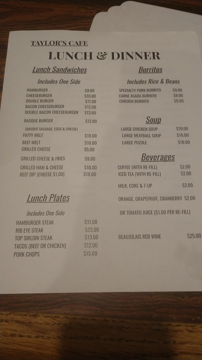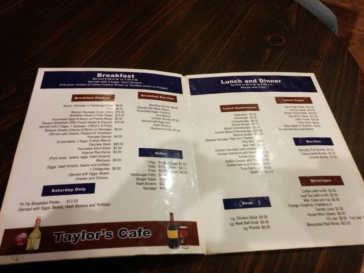 Taylor's Cafe - CA 91710 Menu